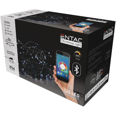 1 kép Entac karácsonyi fényfüzér 120LED IP44 9m hideg fehér aplikáció