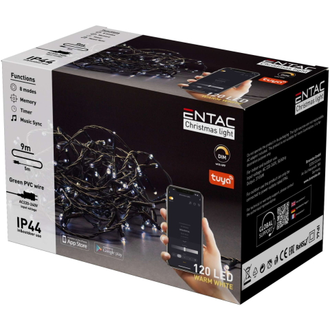 Entac Karácsonyi IP44 120 LED Füzér WW 9m Tuya APP
