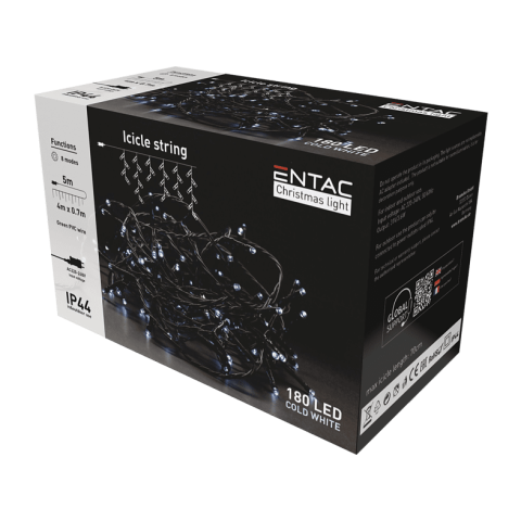 1 kép Entac Karácsonyi IP44 180 LED, jégcsapfüzér, hideg fehér, 4m (ECL-I180CW)