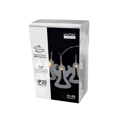 Entac Karácsonyi MELEG fehér Angyalka fényfüzér BELTÉRI IP20 - 10 LED - 1m
