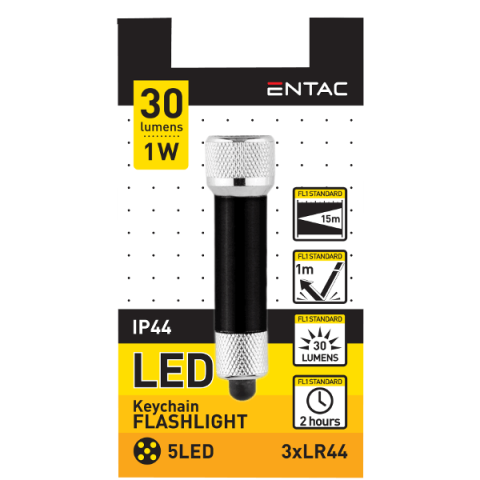 Entac KULCSTARTÓS LED LÁMPA FEKETE 30LM 1W 3×LR44 (TARTOZÉK)