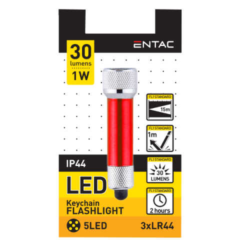 1 kép Entac KULCSTARTÓS LED LÁMPA PIROS 30LM 1W 3×LR44 (TARTOZÉK)