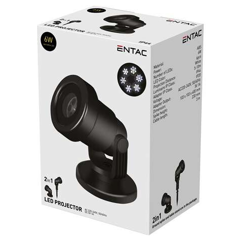 Entac LED Projektor Lámpa 6W fehér 5-10m – 6 W, IP44 / IP20 védelem. Ideális sokoldalú otthoni és irodai felhasználásra. Tartós, megbízható kivitel. Egyszerű használat és gyors eredmény. Entac LED Projektor Lámpa 6W fehér 5-10m – 6 W teljesítmény, IP44