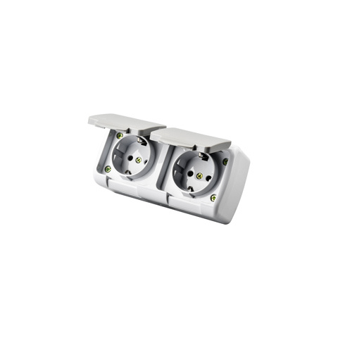 1 kép Entac Stephan 2x2P+F csatlakozóaljzat, biztonsági zsaluval, csapfedeles, IP54, fehér
