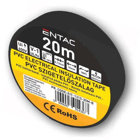 1 kép Entac Szigetelőszalag 0.13x15mm Fekete 20m