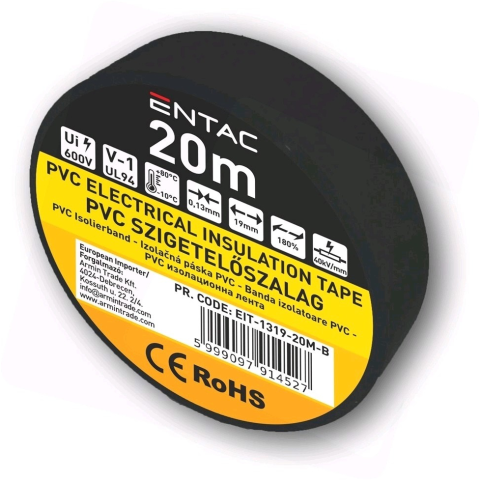 1 kép Entac Szigetelőszalag 0.13x19mm Fekete 20m, Entac