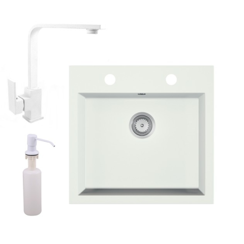 Eos Gránit mosogató EOS Como + Design csaptelep + adagoló + szifon (fehér) csaptelep 1 kép
