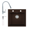 1 kép    Eos Gránit mosogató EOS Como + kihúzható zuhanyfejes Snake csaptelep + adagoló (matt barna)