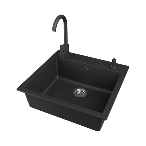 Eos Gránit mosogató EOS Como + magasított csaptelep + adagoló + szifon (matt fekete) mosogatótálca termékleírás