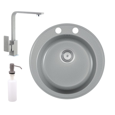Eos Gránit mosogató EOS Valero + magasított csaptelep + adagoló (matt szürke)