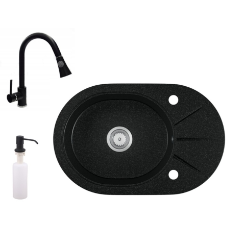 1 kép Eos Gránit mosogató EOS Zia + kihúzható zuhanyfejes Snake csaptelep + adagoló (fekete)