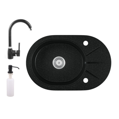 Teljes Eos Gránit mosogató EOS Zia + magasított csaptelep + adagoló (fekete) termékleírás