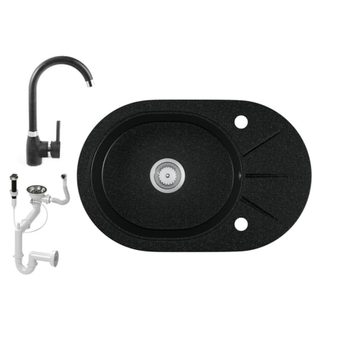 Teljes Eos Gránit mosogató EOS Zia + magasított csaptelep + dugókiemelő (fekete) termékleírás