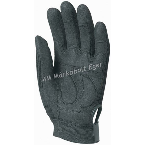 928, 929, 930 • fekete szintetikus bőr nagy igénybevételre (60% kopásálló PA, 40% könnyű PU) • szivaccsal párnázott tenyér, artéria- és körömvédő • rugalmas fekete poliészter kézhát • elasztikus mandzsetta, állítható tépőzáras szegéllyel • méret: 8, 9, 10