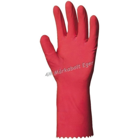 5017, 5018, 5019, 5020 • rózsaszínű, természetes latex • pamutbolyhozott belső • háztartási vegyszerek elleni védelem • 30 cm hosszú, 0,4 mm vastag • csúszás ellen érdesített tenyér • méret: 7, 8, 9 és 10-es • csomagolás: 100/10 EU szabvány: EN420, EN388