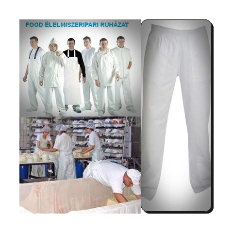 Fehér deréknadrág, 100% pamut Cikkszám: GAN45820 - Méret: 44-62 - Termékleírás: - 220 g/m2 lánckötésű anyag 100% pamut alapanyagú munkaruha - övbújtató csípő , két oldalsó és egy farzsebbel.