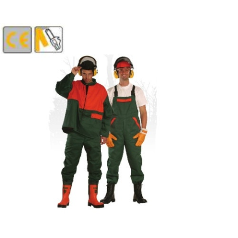 Vágásbiztos kertésznadrág - Kézi láncfűrészek elleni védőruha: kopásálló poliészter és szellőző pamut alapanyagok keveréke - az elejerészeken, a vállaknál és az ujjakon kilenc rétegű, aramidszálas vágásvédő betét - véd 20 m/s láncsebességű láncfűrés