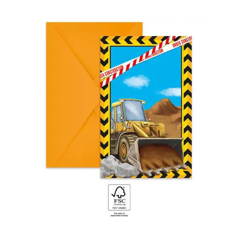 1 kép Építkezés Construction, Építkezés Party meghívó 6 db-os FSC