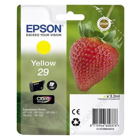 Epson C13T29844010 Tintapatron XP235/332 nyomtatókhoz, EPSON sárga, 3,2ml (TJE29844) nyomtatópatron & toner termékleírás