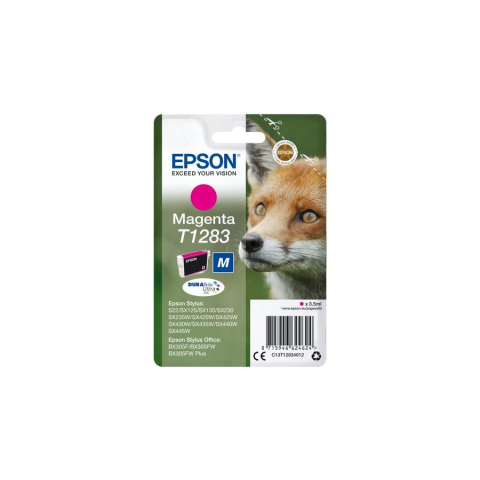 Epson Fox T1283. Színes festék típusa: Pigment alapú tinta, Nyomtatási oldalszám színes tintapatronnal: 160 oldalak, Színes tinta mennyisége: 3,5 ml, Nyomtatási színek: Magenta, Mennyiség csomagonként: 1 db
