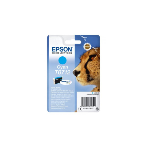 Epson T0712. Tintapatron kapacitás: Standard teljesítmény, Színes tinta mennyisége: 5,5 ml, Nyomtatási színek: Cián, Mennyiség csomagonként: 1 db