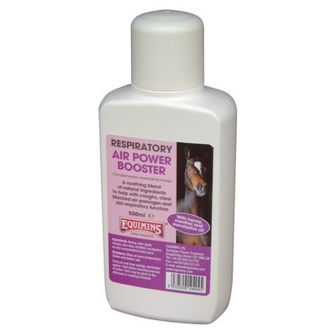 Az Air Power Booster nyálka és köhögésoldó szirup egy légúttisztító gyógyhatású termék lovak számára, amely mézet, alma-ecetet, Aloé Vera-t, mentolt, eukaliptusz olajat és koncentrált citromlevet tartalmaz a légzőszervek megnyugtatására. Szájon át fecskendővel alkalmazandó, de a takarmányba is keverhető. Ez esetben bizonyosodjon meg róla, hogy a ló azt elfogyasztja. Megbízható készítmény, amely segít a köhögés csillapításában és a légutak tisz