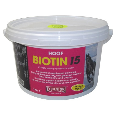 A Equimins Biotin 15 (15 mg / adag biotin tartalommal) termék 2020-ban megújult összetétellel kapható, így még több cinkkel és rézzel. A biotin az egészséges pata növekedéséhez szükséges kiegészítő, ezen kívül a bőr és szőrzet javulását is eredményezi. Cinket, metionint, rezet, MSM-t és kalciumot tartalmaz. A biotin tartalmú termékek etetése viszonylag hosszú ideig javasolt, hat-tíz hónap alatt érhet el jelentősebb változást a pata szerkezetében. Amen