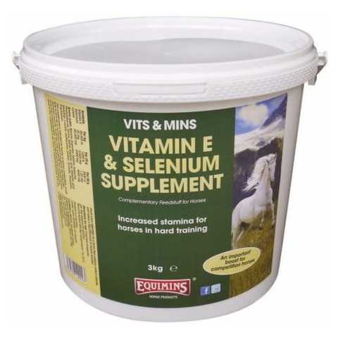 Az Equimins Vitamin E & Selenium Supplement egy E-vitamint, szelént és lizint tartalmazó por állagú kiegészítő sport- és bemutató lovak számára. Segít támogatni a fokozott oxigénfelvételt intenzív terhelés során, antioxidáns hatásának köszönhetően pedig hozzájárul a szabad gyökök semlegesítéséhez.