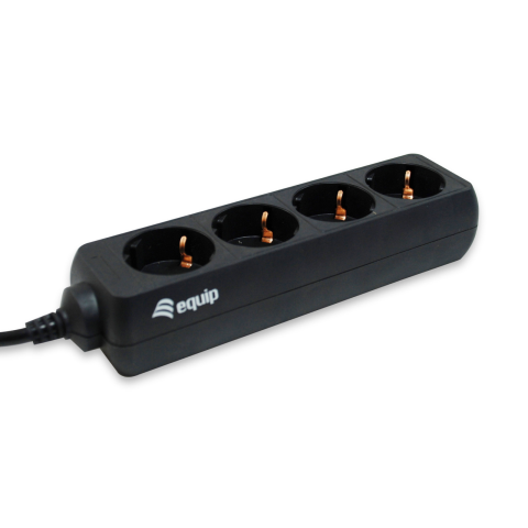 Equip Hálózati Elosztó - 333281 (C14, 4 Schuko, fekete) 333281 4-Outlet Power Strip Model Number 333281 SKU 333281 1 x IEC C14 Male 4 x DIN49440 (Schuko) Cable SPEC:H05VV-F 3G 1.0 mm² x 1.1m Material: Plastic Shell Rating: 250V 50/60Hz / 1
