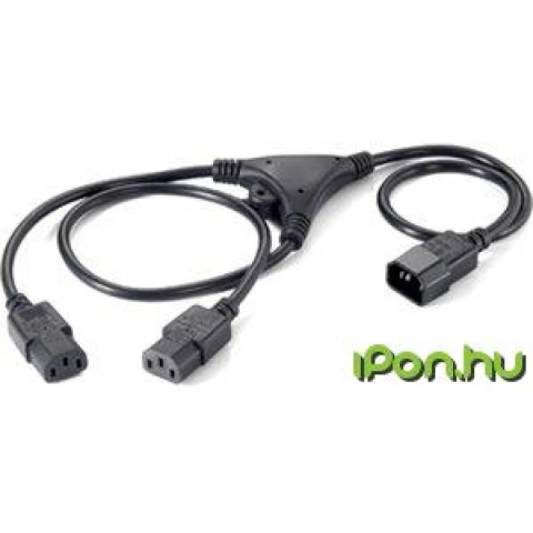 Y PC tápkábel hosszabbító, 1,6m, fekete, C13/C14.