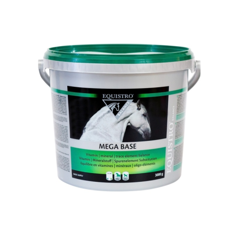 Ásványi anyag és vitamin alapellátás. A Mega Base a szemes és szálas takarmányok ásványi anyaggal és vitaminokkal történő teljeskörű kiegészítésére szolgál. Kúraszerű napi adagolása mellett rövid időn belül elérhető a jó kondíció, vitalitás, betegségekkel szembeni ellenállóképesség, egészséges anyagcsere, étvágy fokozódása. Olyan vitamin-, és mikroelemkiegészítő, amely segít a takarmányozási hiányosságokat ellensúlyozni. A több nyomelemet, z