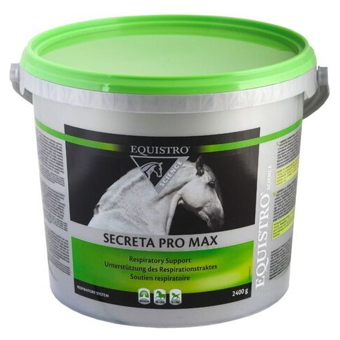 Pelletált takarmánykiegészítő, ami különleges kombinációja több gyógynövénynek és magas biológiai hasznosulású E-vitaminnak. Előbbiek közül több is ismert széleskörű biológiai hatásáról. A Secreta Pro Max különösen hasznos lehet olyan lovaknál, amelyek teljesítménye a nagy mennyiségű letapadt nyálka miatt csökkent. Alsó légúti allergiás betegségek (ló-aszthma) kiegészítő kezelésére is alkalmas. Idült kehesség tüneteinek mérséklésére