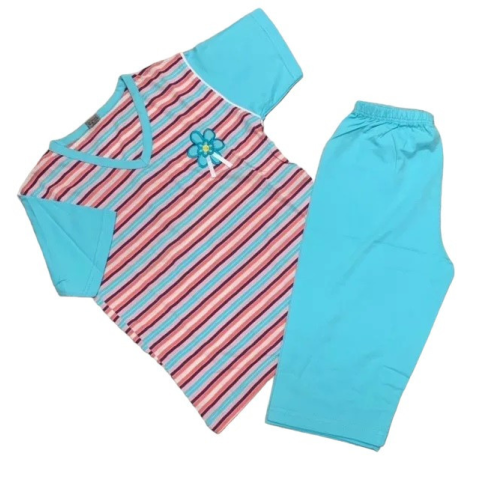 1 kép Erkan Nyári pizsama bermudával 122-128 - Türkiz Kék Csíkos Virág Mintával (KIÁRUSÍTÁS)