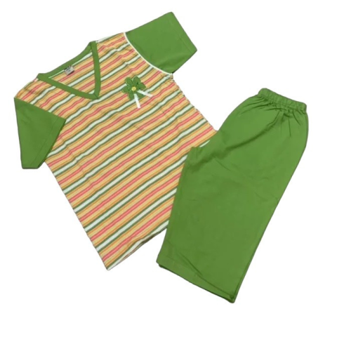 1 kép Erkan Nyári pizsama bermudával 152-158 - Zöld Csíkos Virág Mintával (KIÁRUSÍTÁS)