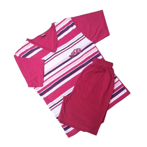 1 kép Erkan Nyári pizsama shorttal 158-164 - Fuchsia csíkos / "Love" - Kiárusítás