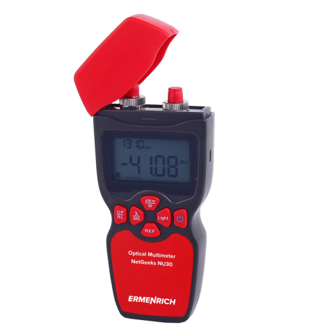 Az Ermenrich NetGeeks NU30 egy vizuális hibakereső (VFL) funkcióval rendelkező optikai multiméter, amely a száloptikai kommunikációs vonalak tervezésével, fektetésével és telepítésével foglalkozó szakemberek elengedhetetlen eszköze. A készülékkel mérheti a száloptikai rendszerforrás kimeneti teljesítményét, mérheti a kábel optikai teljesítményveszteségét, valamint és
