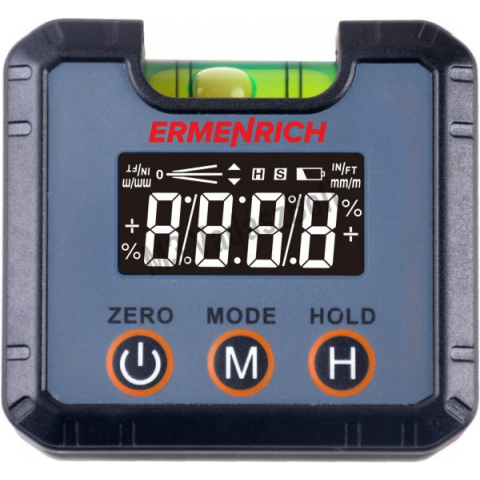 Az Ermenrich Verk LQ30 egy digitális szintező, amely nagyszerű eszköz lesz minden építész, szerelő, a befejező építési munkák mestere, a gyártógép kezelője stb. számára. Biztosan jól fog jönni otthon is a javításoknál is. A készülék 360°-on (4x90°) belüli lejtésszögeket mér, LCD-képernyőn mutatva meg a lejtésszöget és a lejtési irányt. A leolvasott értékeket fokban és más, választható mértékegységekben jelzi ki. A készülék megméri a lejtés m
