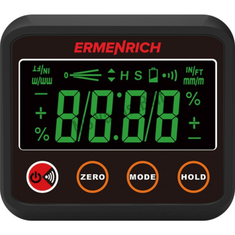 Ismerkedjen meg az Ermenrich Verk LQ40 mágneses digitális szintezővel, amely sokféle alkalmazást tesz lehetővé. Használható fémszerkezetek szintezésére építési és javítási munkáknál, valamint a gyártásban egyes elemek lejtésének mérésére, valamint kések élezésére. A lejtést 0–360° (4x90°) tartományban tudja mérni, és hangjelzés segít a tárgy precíz vízszintes vagy függőleges beállításában. Az értékeket fokban, százalékban ill. más, a felhasz