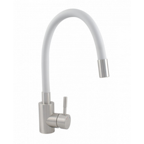 1 kép    Ermetiq Álló mosogató csaptelep, Inox, flexibilis - fehér