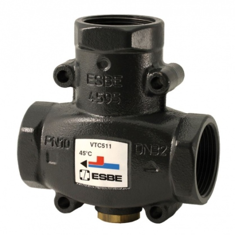 ESBE VTC 511 DN25 65°C keverőszelep 1” KVS9. Kátrányosodás elleni védelem céljából, a kazán élettartalmának növelésére. Védi a kazánt a túl alacsony visszatérő hőmérséklettől.