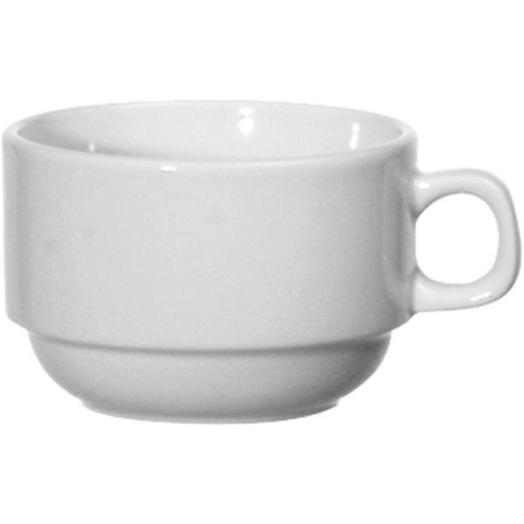 Fehér porcelán kávéscsésze Eschenbach Systemgeschirr Form 903, 0,18 l űrtartalommal. Ajánlott kiegészíteni a 221193110 számú csészealjjal. Az űrtartalom a csésze pereméig megadott, a hasznos űrtartalom kisebb. Átmérő 83 mm és magasság 55 mm.