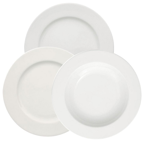 18 részes Eschenbach Primavera tányérkészlet. A készlet a következőket tartalmazza: 6 x sekély tányér 26 cm, 6x mélytányér 22 cm és 6 x desszertes tányér 20 cm. A Primavera modellsorozat egyszerűségének köszönhetően az étel szépen kitűnik a tányéron. A terítés tisztának és harmonikusnak hat. A készlet a következőket tartalmazza: 221193803, 221193806 és 221193802.