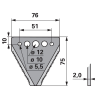Gyári cikkszámok: 344.3090, 344.3091, DIN 75 Kivitel: fogazott Szélesség (b): 76 mm Magasság (h): 75 mm Furattáv (la): 51 mm Furattáv 2 (la2): 10 mm Lyukátmérő: 5,5 mm Lyukátmérő 2: 10 mm Lyukátmérő 3 (d3): 12 mm Gyári cikkszámok: 344.3090, 344.3091, D