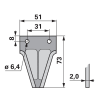 Gyári cikkszámok: 344.009, 344.0091 Kivitel: sima Szélesség (b): 51 mm Magasság (h): 73 mm Furattáv (la): 31 mm Furattáv 2 (la2): 8 mm Lyukátmérő: 6,4 mm Süllyesztett szegecsfurat: nem Vastagság (s): 2 mm Gyári cikkszámok: 344.009, 344.0091 Kivitel: si