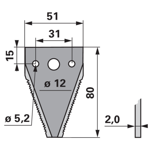 Gyári cikkszámok: 344.049, 344.0491 Kivitel: fogazott Szélesség (b): 51 mm Gerenda fajtája: 4= védőujjas kasza Magasság (h): 80 mm Furattáv (la): 31 mm Furattáv 2 (la2): 15 mm Lyukátmérő: 5,2 mm Lyukátmérő 2: 12 mm Süllyesztett szegecsfurat: nem Vastagság
