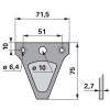 Gyári cikkszámok: 344.0621, 344.0623, 344.064 Kivitel: sima Szélesség (b): 71,5 mm Gerenda fajtája: 3= kummunális kaszák Magasság (h): 75 mm Furattáv (la): 51 mm Furattáv 2 (la2): 10 mm Lyukátmérő: 6,4 mm Lyukátmérő 2: 10 mm Süllyesztett szegecsfurat: alu
