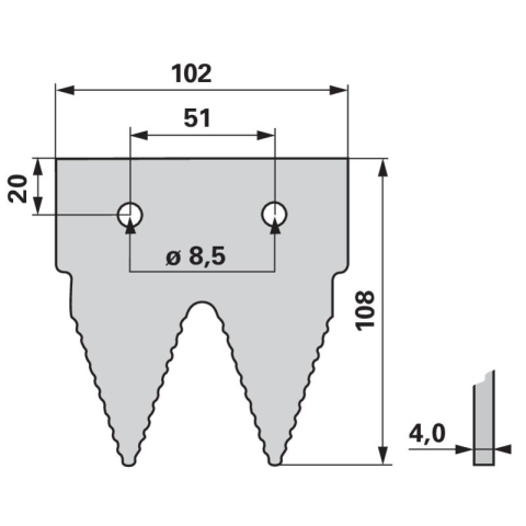 Gyári cikkszámok: 321.104, 321.1041 Kivitel: fogazott Szélesség (b): 102 mm Magasság (h): 108 mm Furattáv (la): 51 mm Furattáv 2 (la2): 20 mm Lyukátmérő: 8,5 mm Süllyesztett szegecsfurat: nem Vastagság (s): 4 mm Gyári cikkszámok: 321.104, 321.1041 Kivi