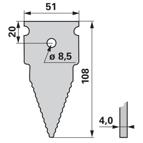 Gyári cikkszámok: 321.0011, 321.004, 321.0041 Kivitel: fogazott Szélesség (b): 51 mm Magasság (h): 108 mm Furattáv (la): 20 mm Lyukátmérő: 11 mm Süllyesztett szegecsfurat: nem Vastagság (s): 4 mm Gyári cikkszámok: 321.0011, 321.004, 321.0041 Kivitel: f