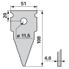 Gyári cikkszámok: 321.005 Kivitel: fogazott Szélesség (b): 51 mm Magasság (h): 108 mm Furattáv (la): 20 mm Lyukátmérő: 11,5 mm Süllyesztett szegecsfurat: nem Vastagság (s): 4 mm Gyári cikkszámok: 321.005 Kivitel: fogazott Szélesség (b): 51 mm Magasság