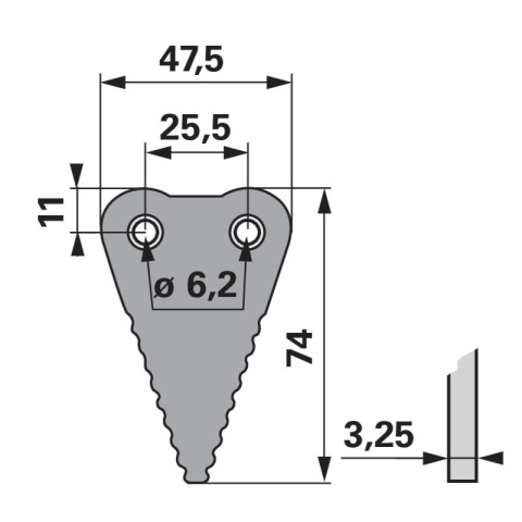 Gyári cikkszámok: 321.0081, 321.1221 Kivitel: Carbodux, hullámos Szélesség (B): 47,5 mm Magasság (H): 74 mm Furattáv (LA): 25,5 mm Furattáv 2 (LA2): 11 mm Lyukátmérő: 6,2 mm Süllyesztett szegecsfurat: felül Vastagság (S): 3,25 mm Gyári cikkszámok: 321.
